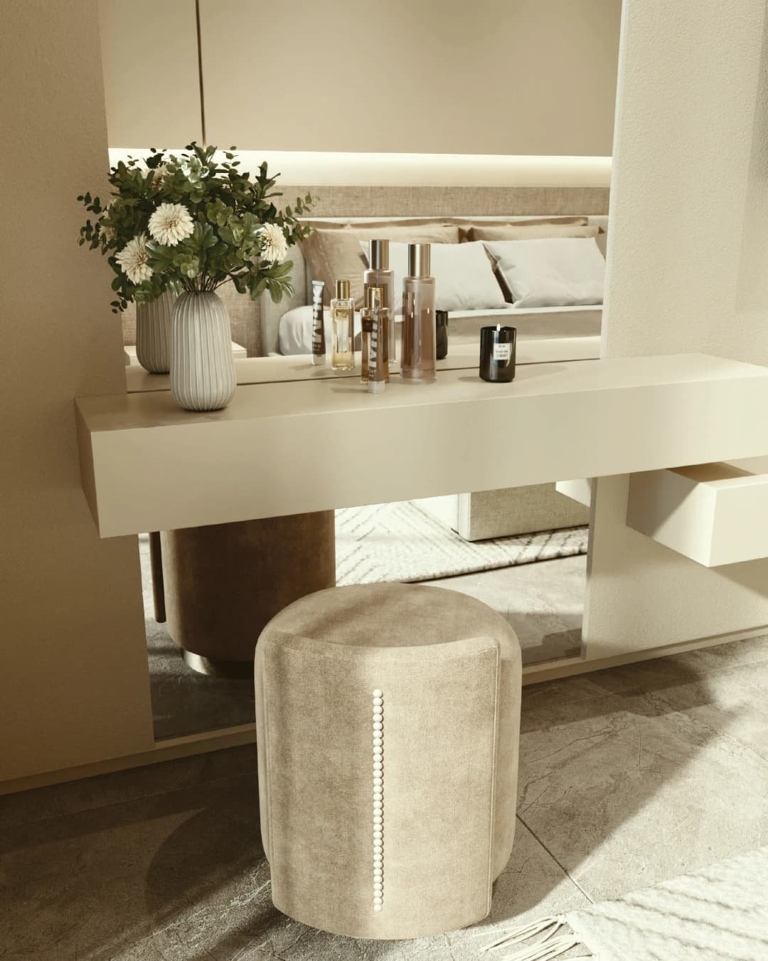 The interiors are shaped through a collaboration with Belmore, a design studio rooted in Italian craftsmanship and inspired by Milanese aesthetics. The design approach emphasizes refined simplicity, with carefully selected materials, balanced textures, and a restrained palette that enhances light and spatial harmony. Finishes are executed with precision and consistency, creating calm, elegant living spaces where every detail serves a purpose. Kitchens and living areas follow the same philosophy of understated sophistication, while the overall furnishing concept reflects a cohesive, contemporary style grounded in quality and timeless design.